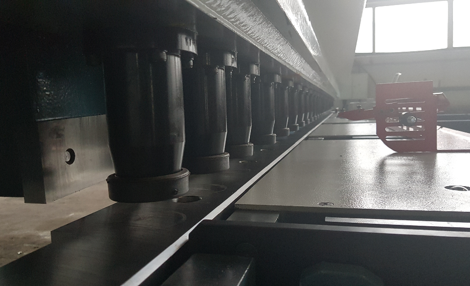 В ЧПУ задается вся необходимая информация: типоразмеры листов, параметры деталей — поэтому участие человека в процессе рубки минимально. Металлическая заготовка размещается в нижней части станка (максимальный размер — 6 000 на 2 000 мм) и надежно фиксируется прижимной балкой, затем гильотинные ножницы опускаются и разрезают лист в соответствии с заданным шаблоном.